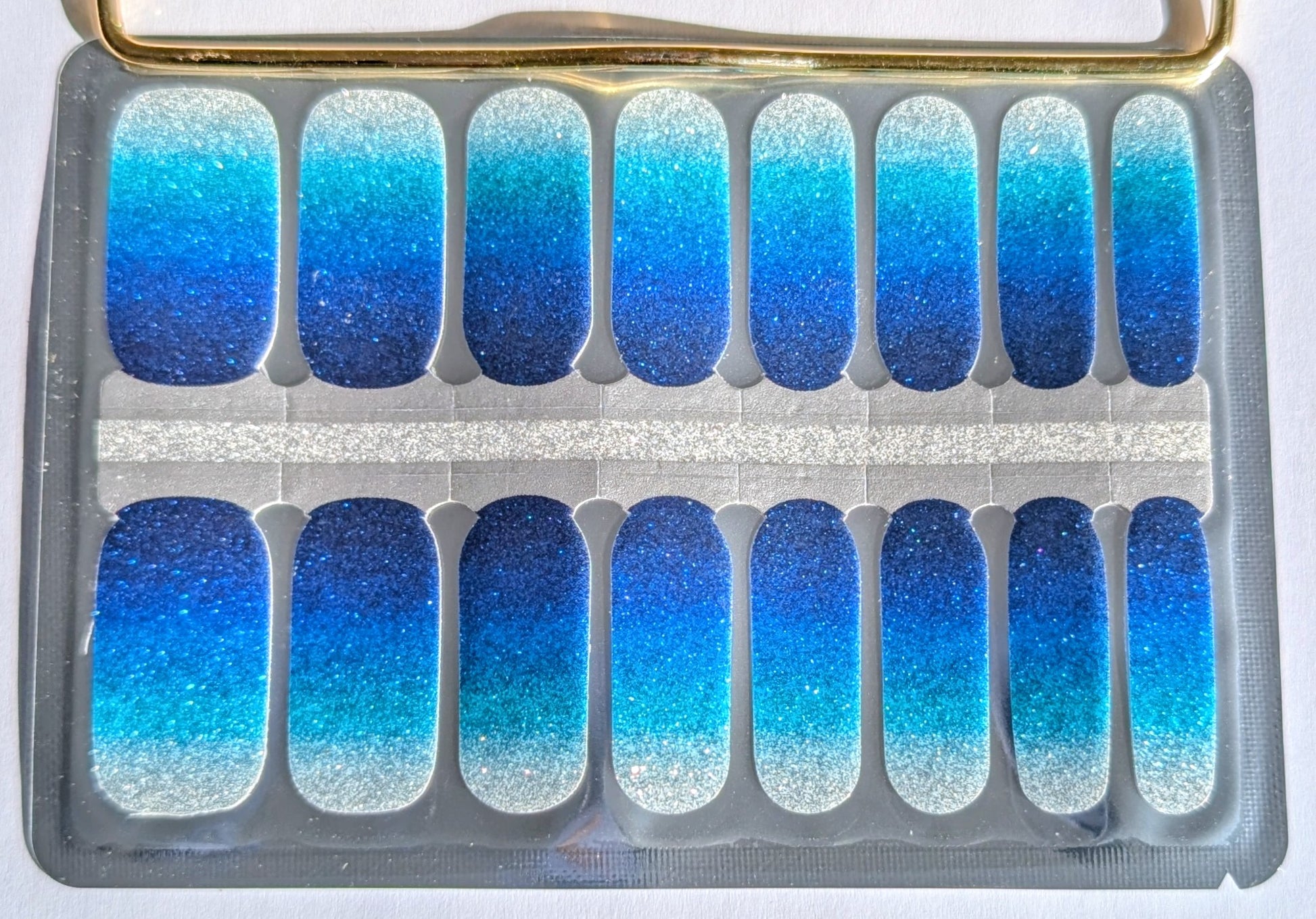 Subtiles, profondes et parfaitement maîtrisées. Eaux Calmes propose un dégradé pailleté aux tons de bleu profond et d’aqua doux, fondu avec fluidité pour un effet lumineux tout en retenue.
