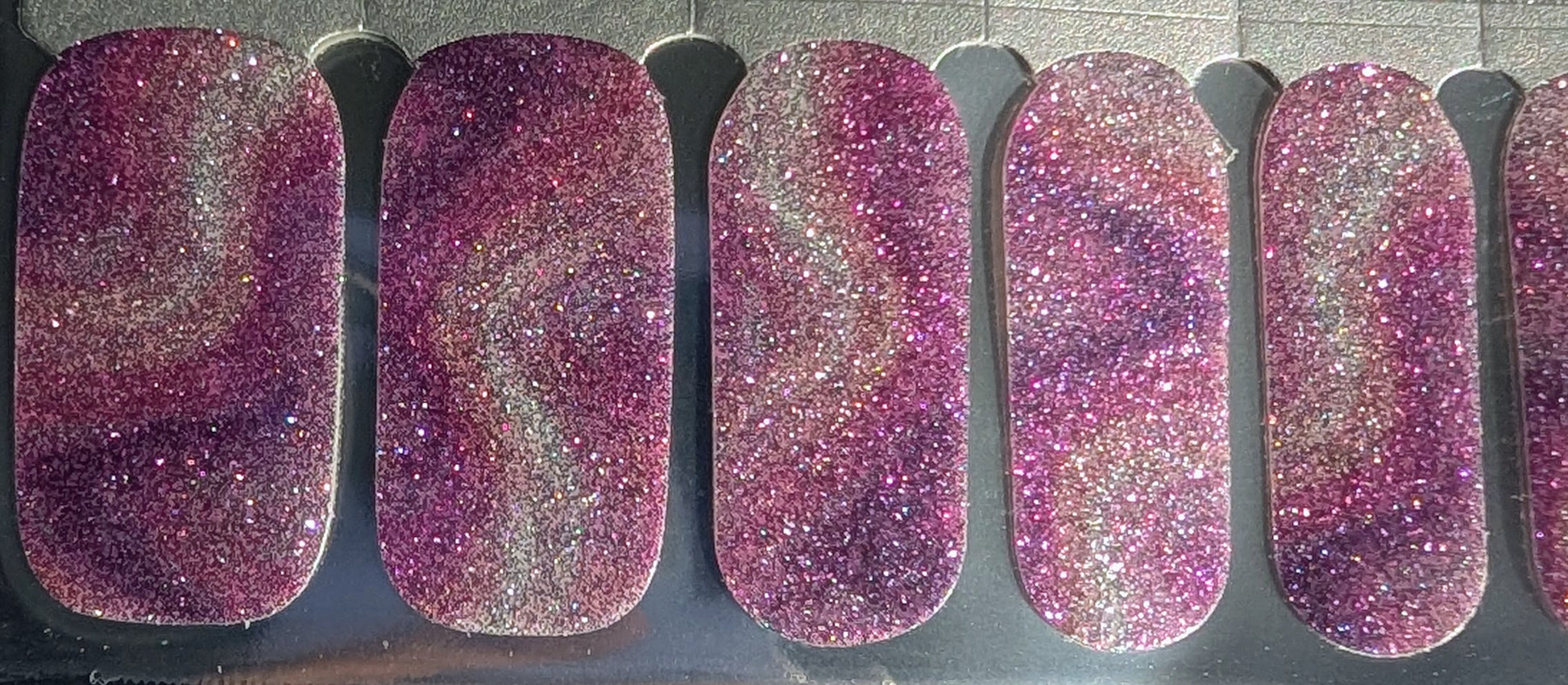 Un éclat doux, sans excès. Lumineuse, en toute discrétion est un ensemble de vernis autocollants scintillants pensé pour un rendu subtil. La finition capte la lumière avec finesse, dans des tons berry élégants qui restent faciles à porter au quotidien.
