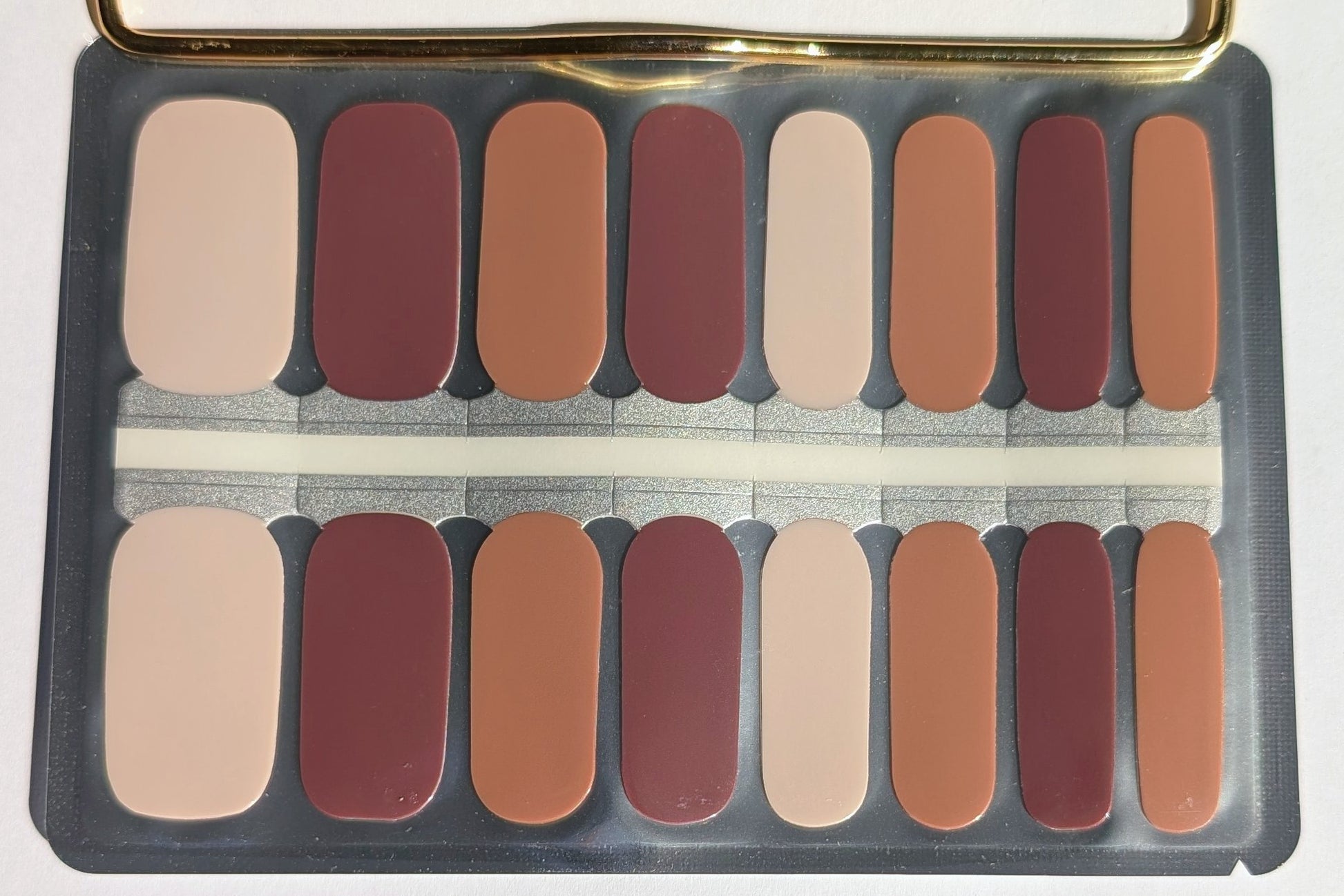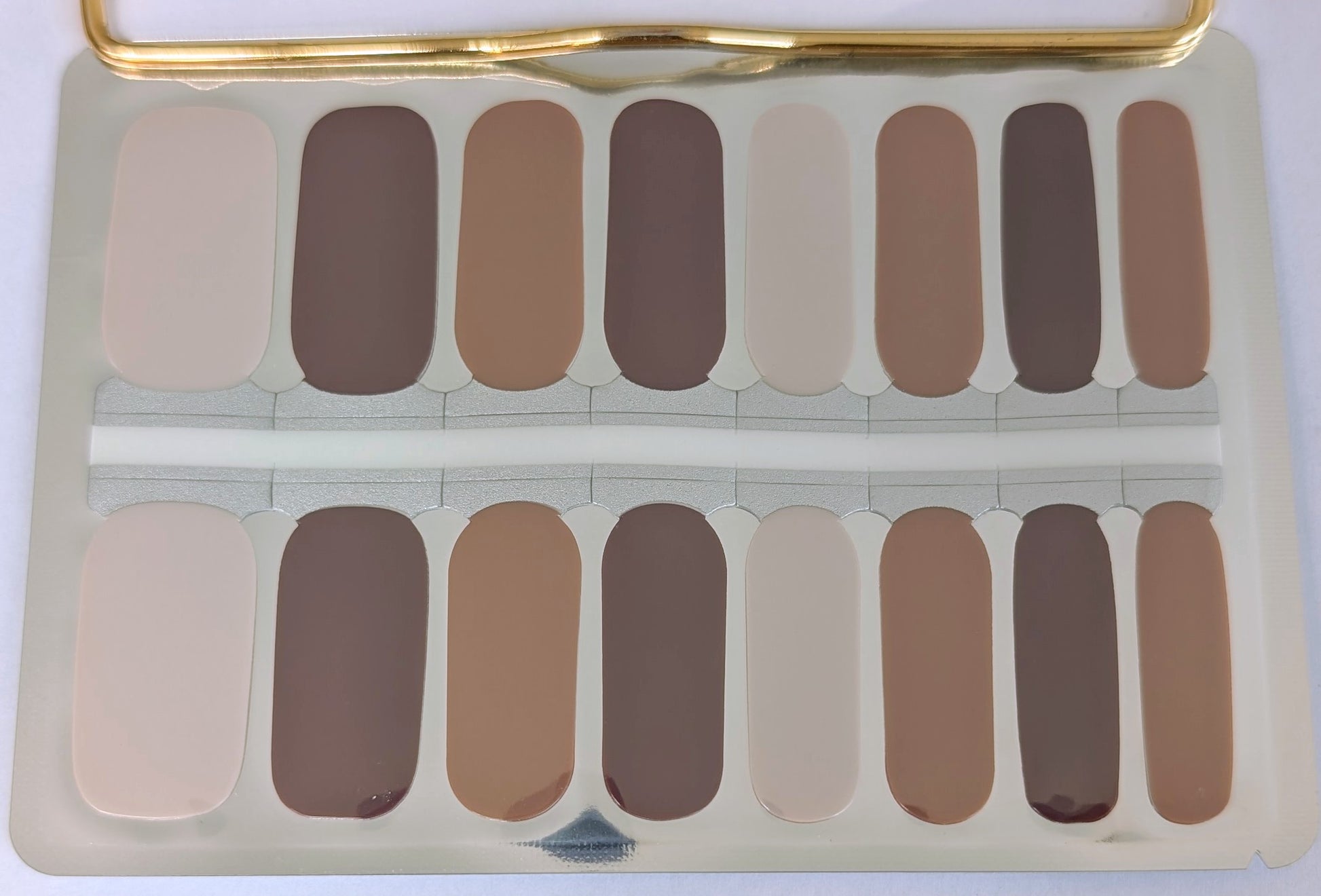 Simple, chaleureux et facile à porter. Retour à l’Essentiel propose un ensemble de vernis autocollants au fini lustré, avec différentes nuances de beige, sable, argile, cacao et brun doux. Des tons neutres inspirés de la terre, pensés pour s’agencer naturellement.