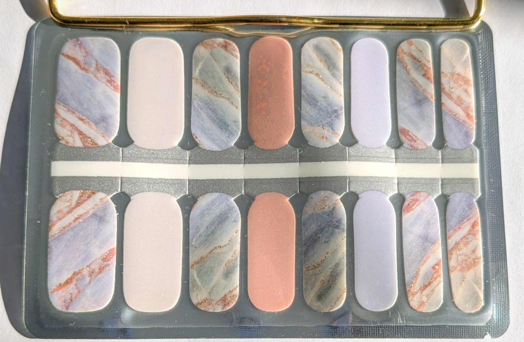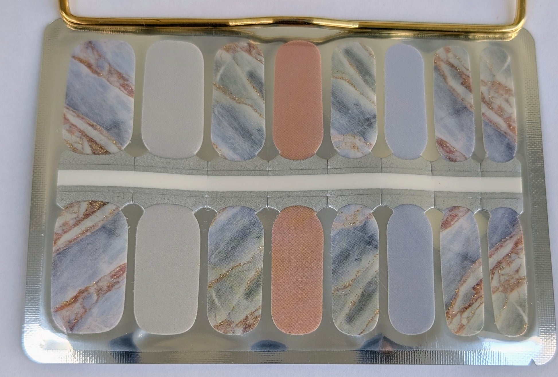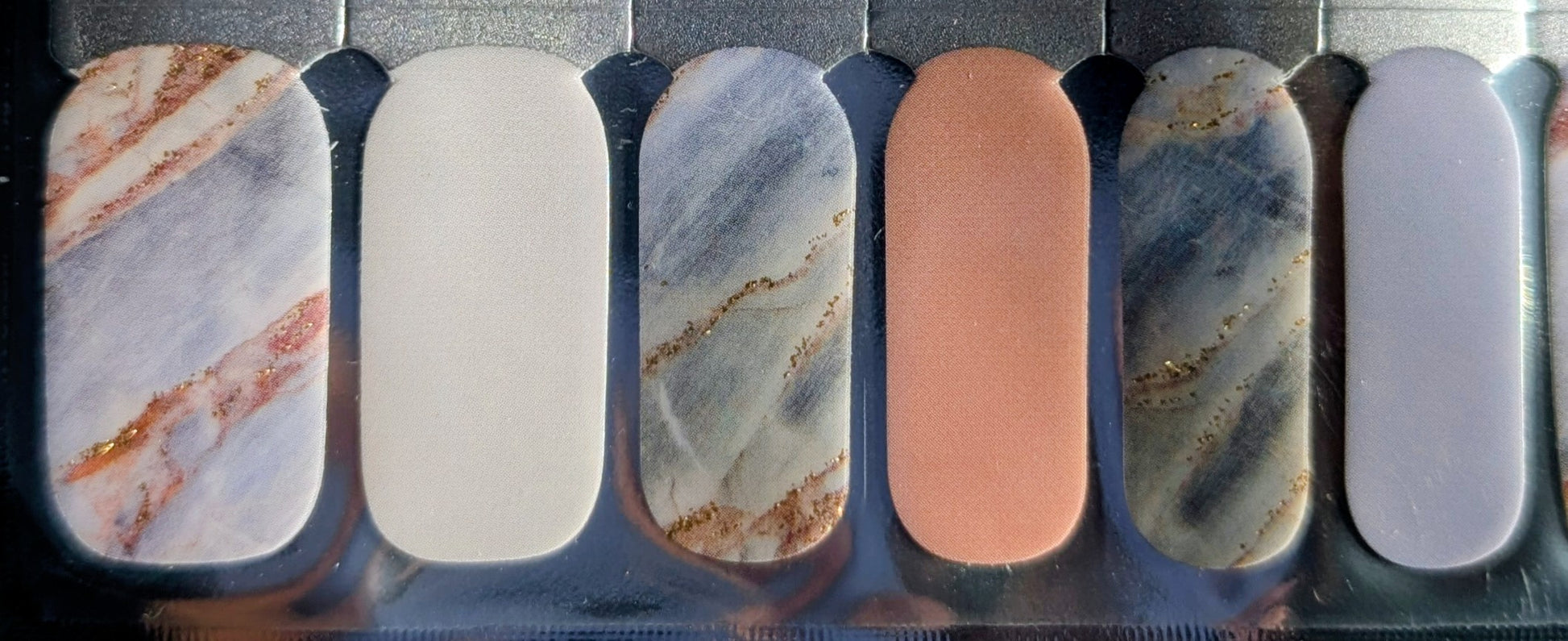 Touches d’Or mise sur l’équilibre parfait. Des tons doux de gris, ivoire et blush s’entrelacent dans un motif marbré délicat, sublimé par de fines lignes dorées qui apportent juste ce qu’il faut d’éclat.