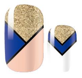 Get ready to shine with our Art Deco Flair nail wraps. These glossy and glittery nail wraps feature a vibrant combo of gold, pink, white, and navy blue colors in a playful geometric pattern that adds a touch of modern elegance to your look. Perfect for any occasion, these wraps will have you feeling glamorous in no time!
