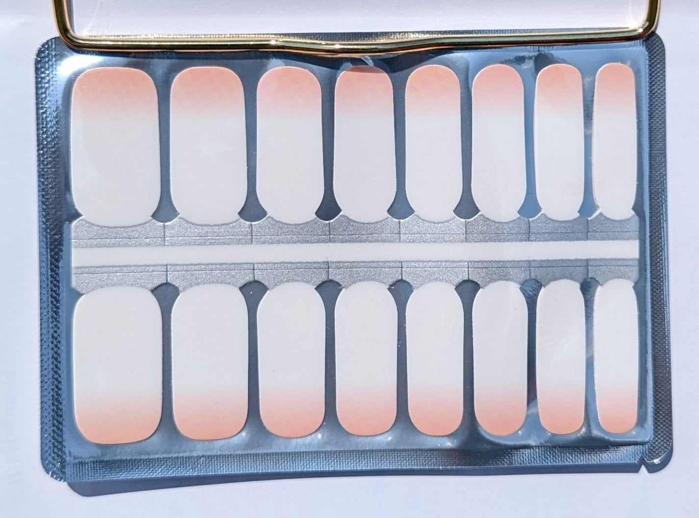 Get ready to shine with our Blushing White Delight nail wraps. These glossy nail wraps feature a subtle pastel pink to white ombré that adds a touch of elegance to your look. Perfect for any occasion, these wraps will have you feeling glamorous in no time!