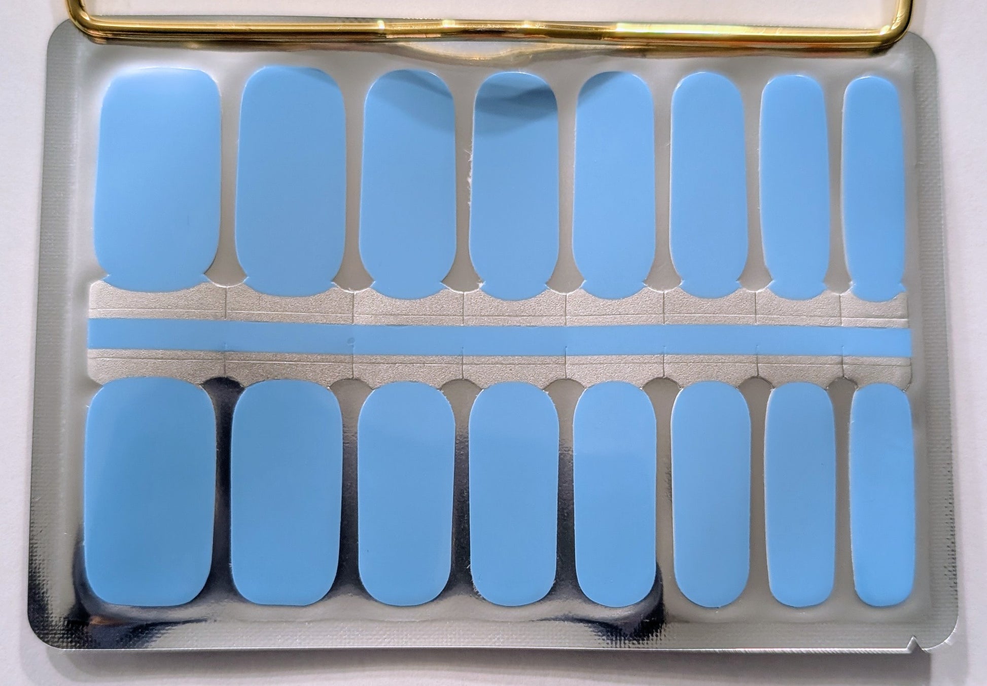 This glossy medium-blue shade feels fresh and sophisticated, perfect for both everyday wear and elevated looks.