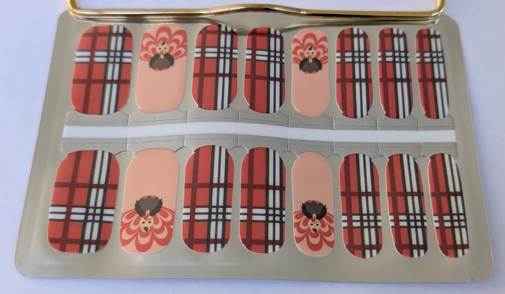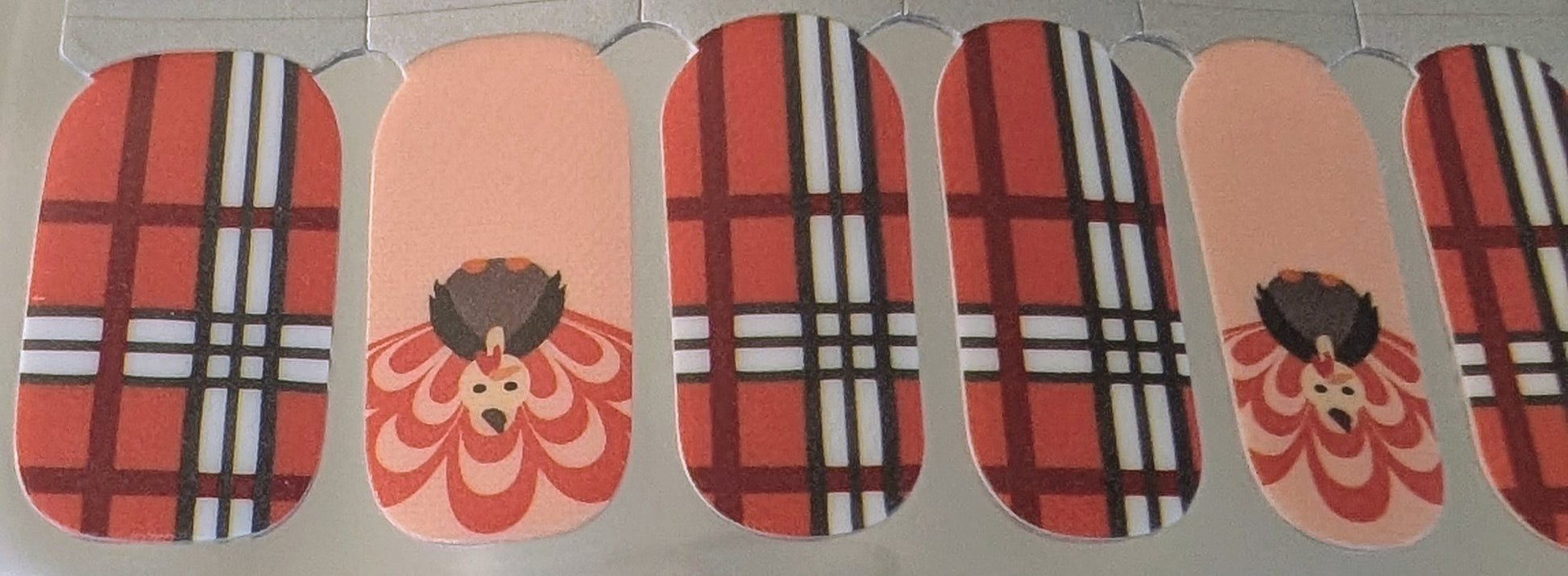 Festive, warm, and full of fall charm. Cozy Harvest blends rich red orangey plaid with soft peach tones and an adorable turkey accent for a playful nod to Thanksgiving. Its glossy finish and cozy color palette make it the perfect choice for celebrating the season in style, from family dinners to Friendsgiving gatherings.