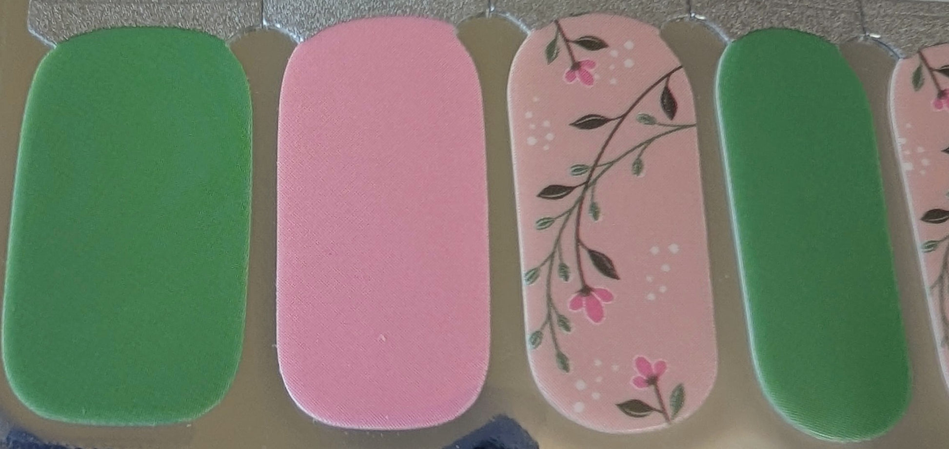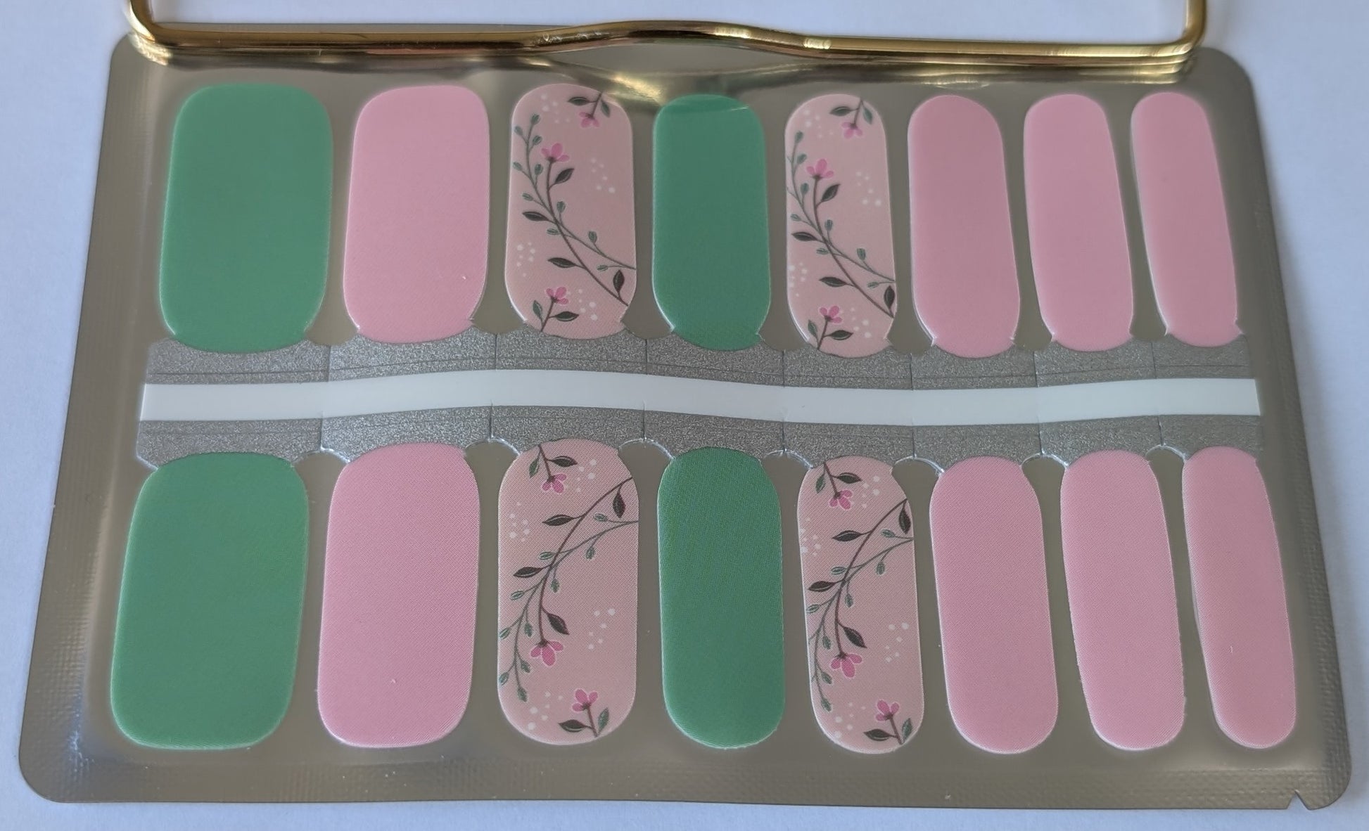 Fresh, calm, and quietly romantic. Dewy Branches features glossy pink and sage green tones paired with delicate branch motifs and tiny pink buds. It’s the kind of design that feels clean yet feminine, perfect for spring, brunch days, or when you want a subtle pop of color that still feels natural.