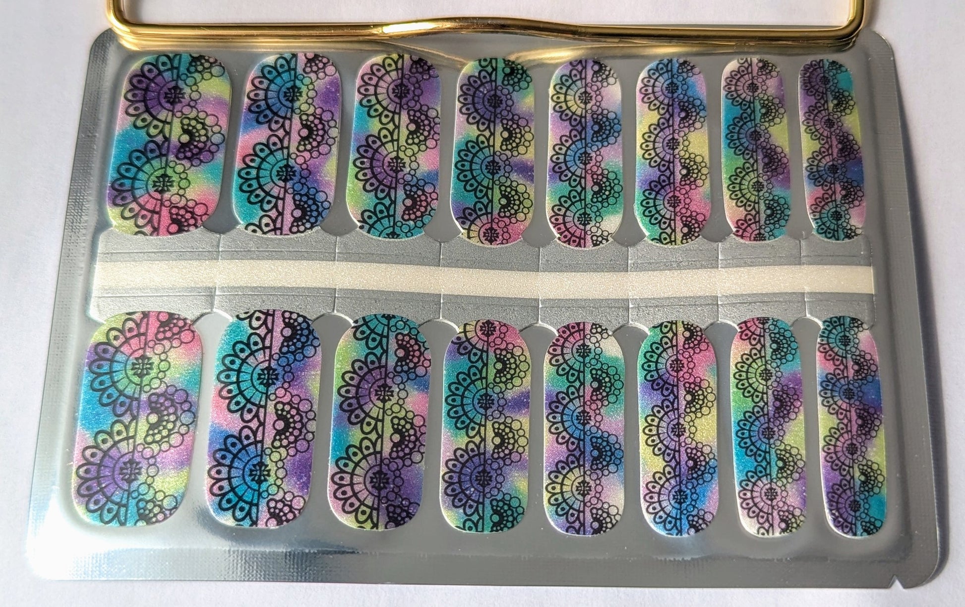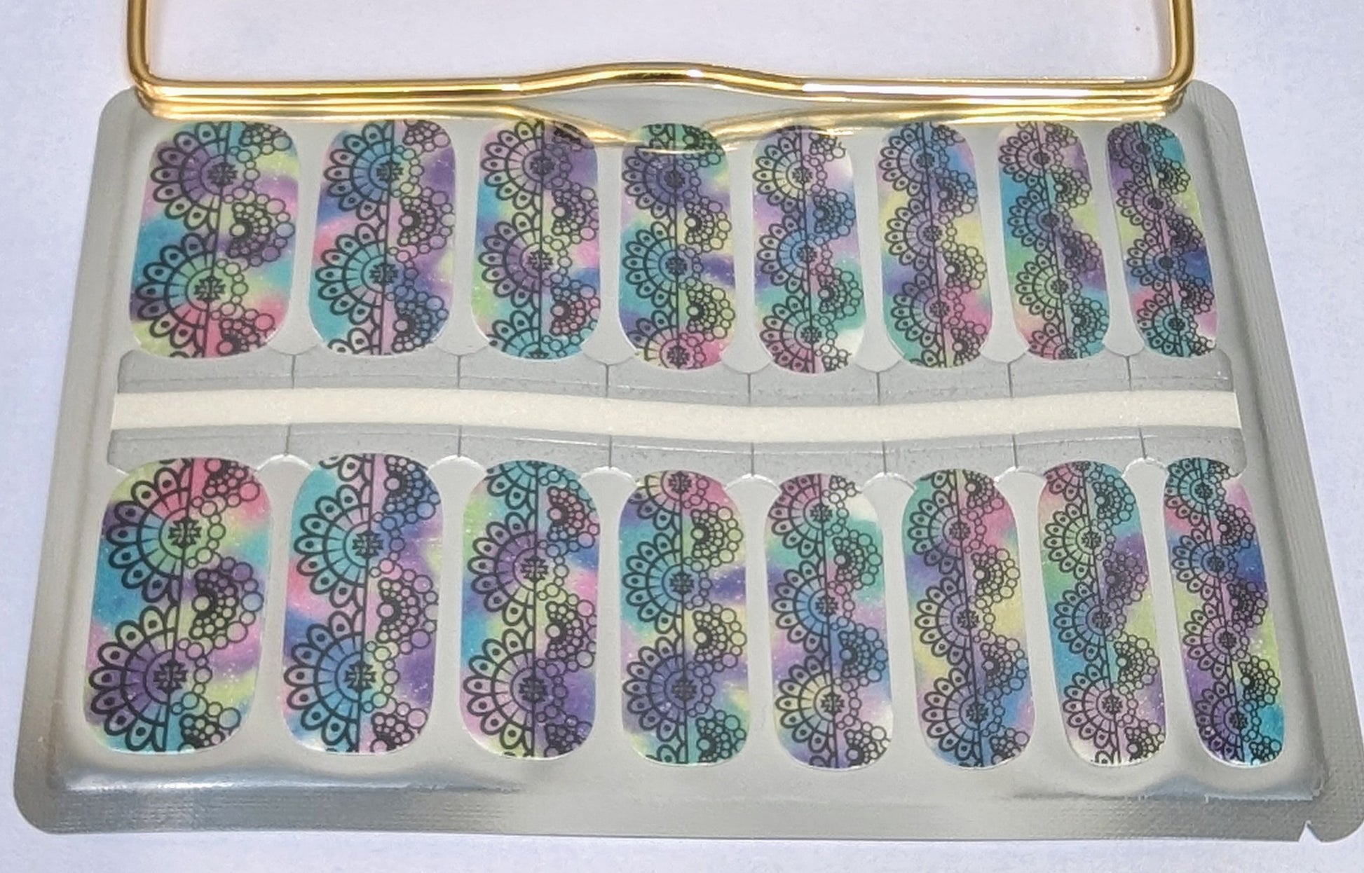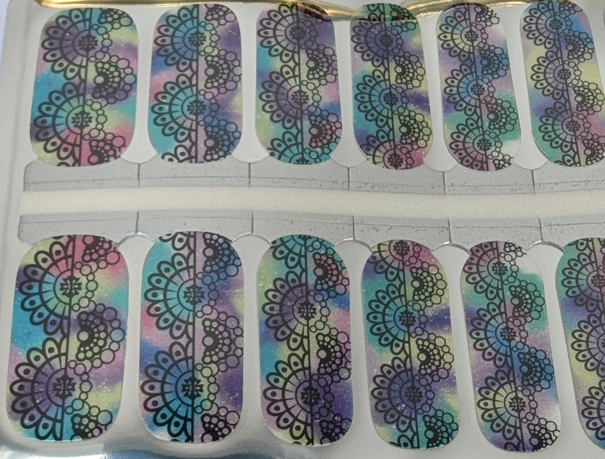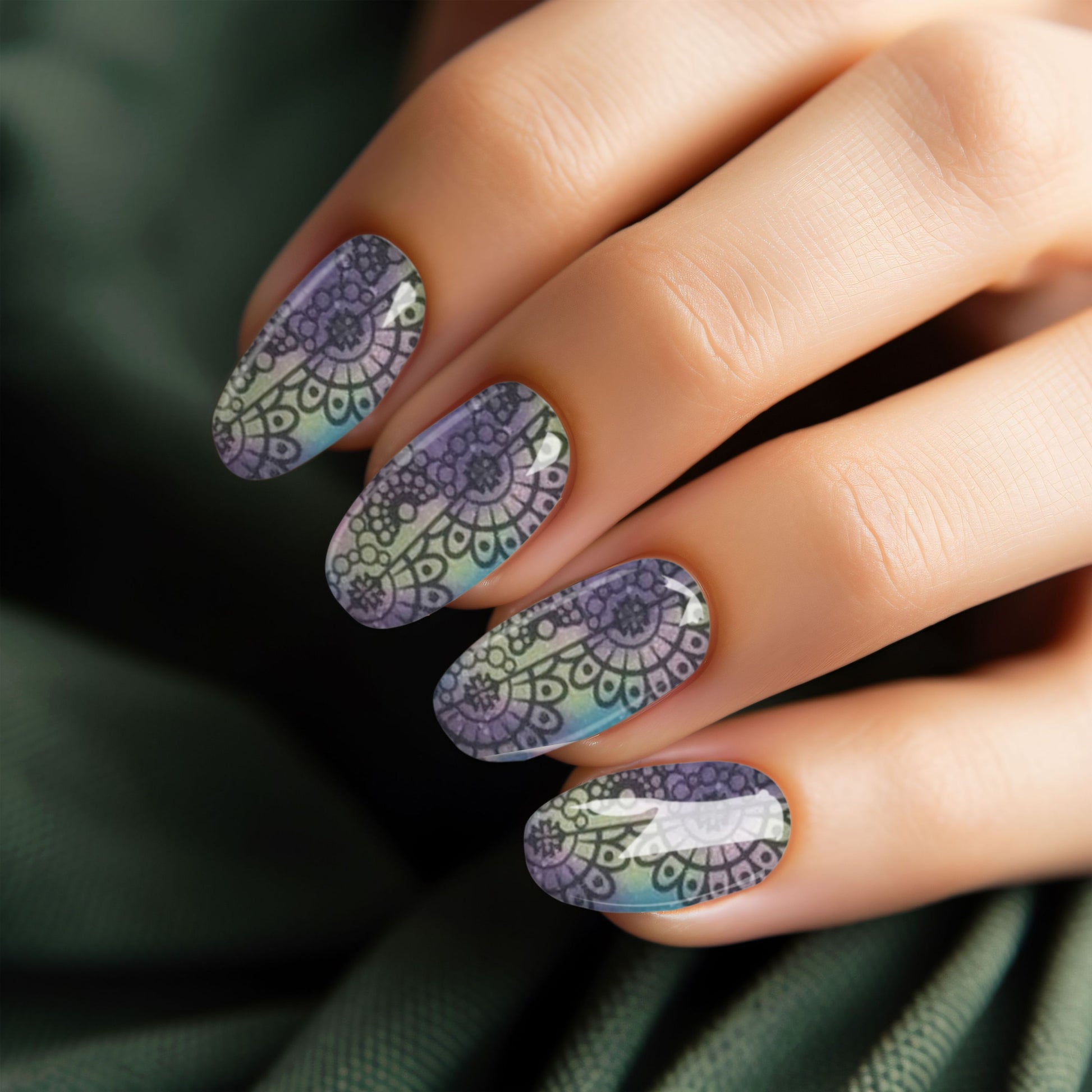 Get ready to shine with our Fancy Doodles nail wraps. These pearlescent nail wraps feature multicolor pastel tones with black mandala patterns that add a touch of playfulness to your look. Perfect for any occasion, these wraps will make you feel glamorous in no time!