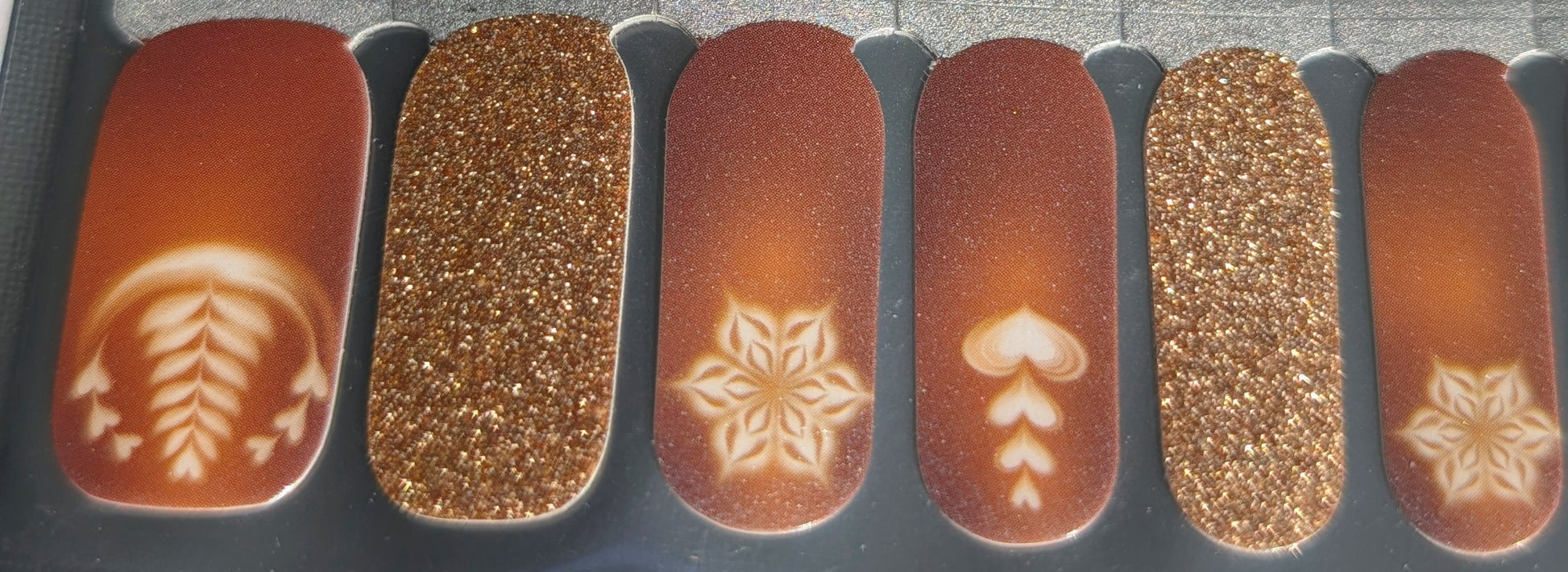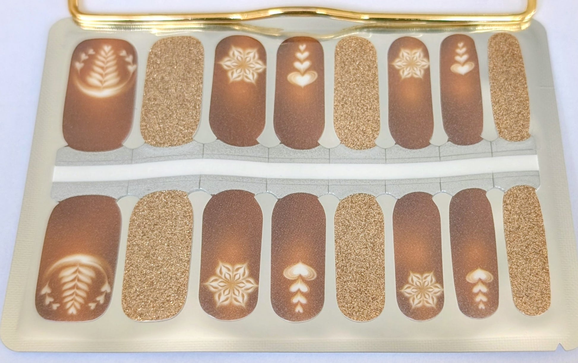 Warm, cozy, and softly glamorous, Foam & Spark blends a pearlescent caramel base with gold-glitter accents and delicate winter-inspired motifs. Think creamy latte tones with a hint of sparkle. It’s the perfect set when you want something festive but still elegant enough for everyday wear.