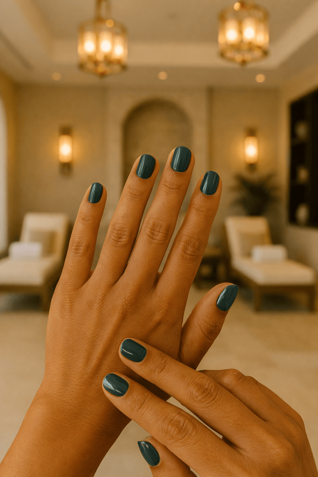 Green After Hours is a deep, warm-toned dark green with a glossy finish that feels polished, grounded, and quietly confident. It leans richer and warmer than cooler dark greens like Deep Ivy, making it the perfect choice for evenings, elevated everyday wear, or when you want your nails to feel intentional without being loud.