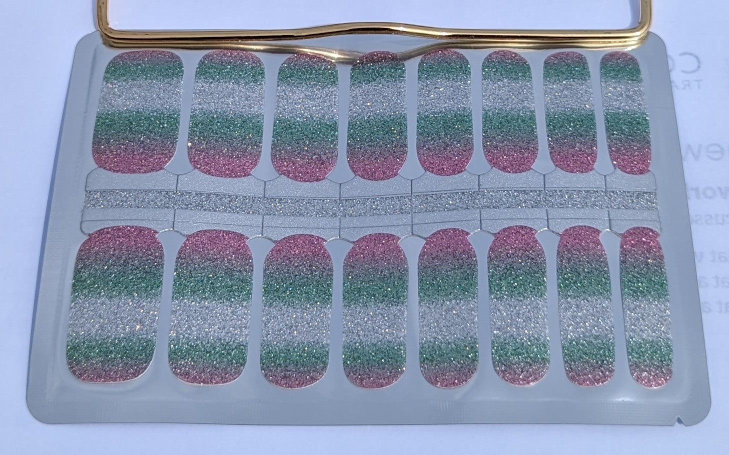 Get ready to shine with our Green Tea Rose nail wraps. These glittery and sparkly wraps feature a pretty combination of grey, pink and light green glittery colors that adds a touch of elegance to your look. Perfect for any occasion, these wraps will have you feeling glamorous in no time!