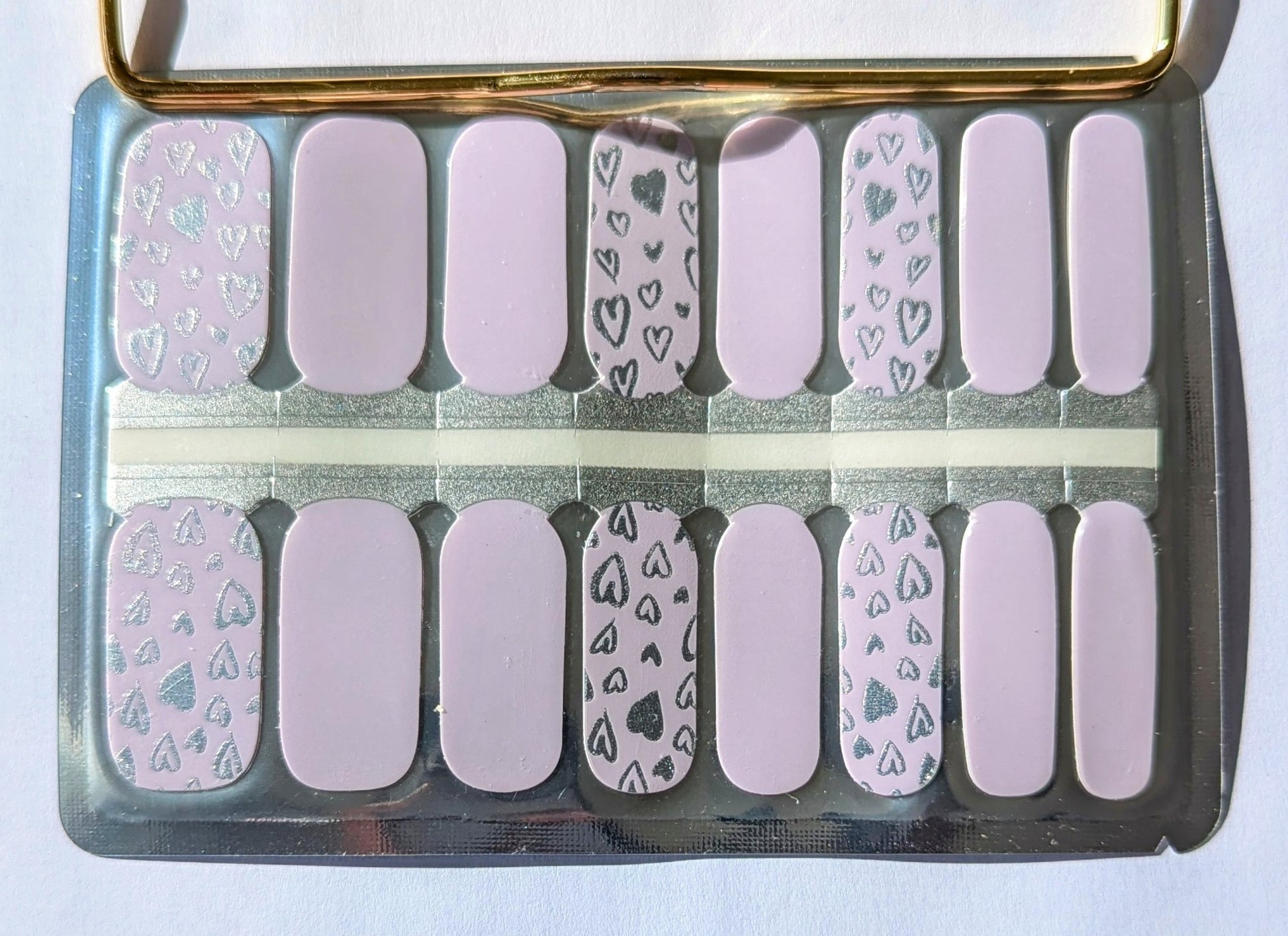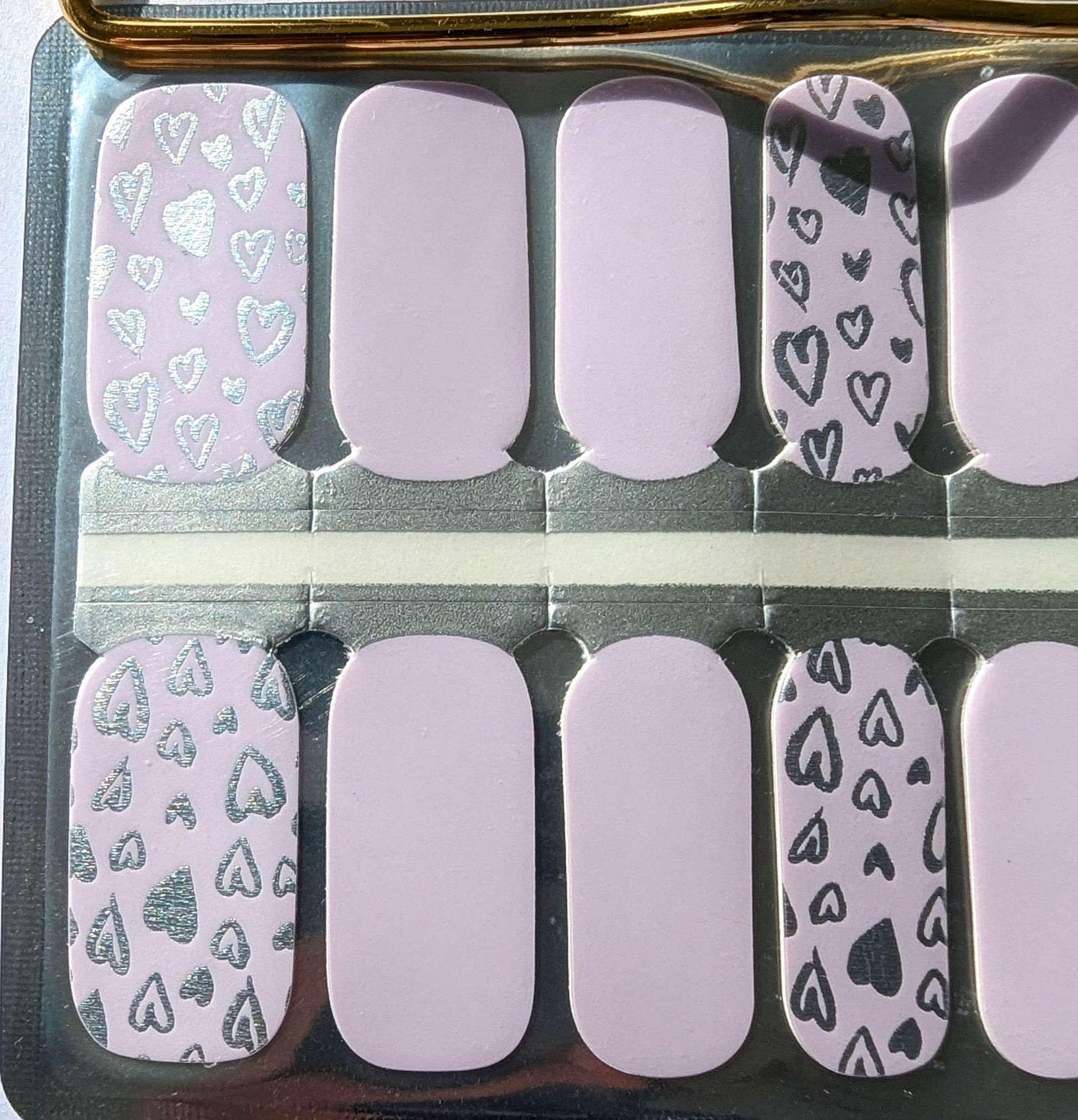 Get ready to shine with our Heart of Mauve nail wraps. These glossy nail wraps feature a feminine mauve tone with a silver metallic hearts pattern on the accent nail that adds a touch of fun to your look. Perfect for any occasion, these wraps will make you feel glamorous!