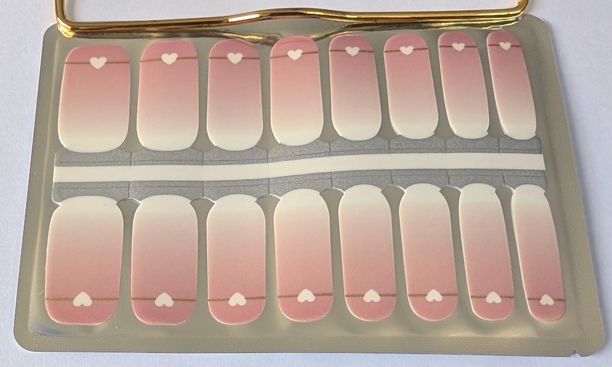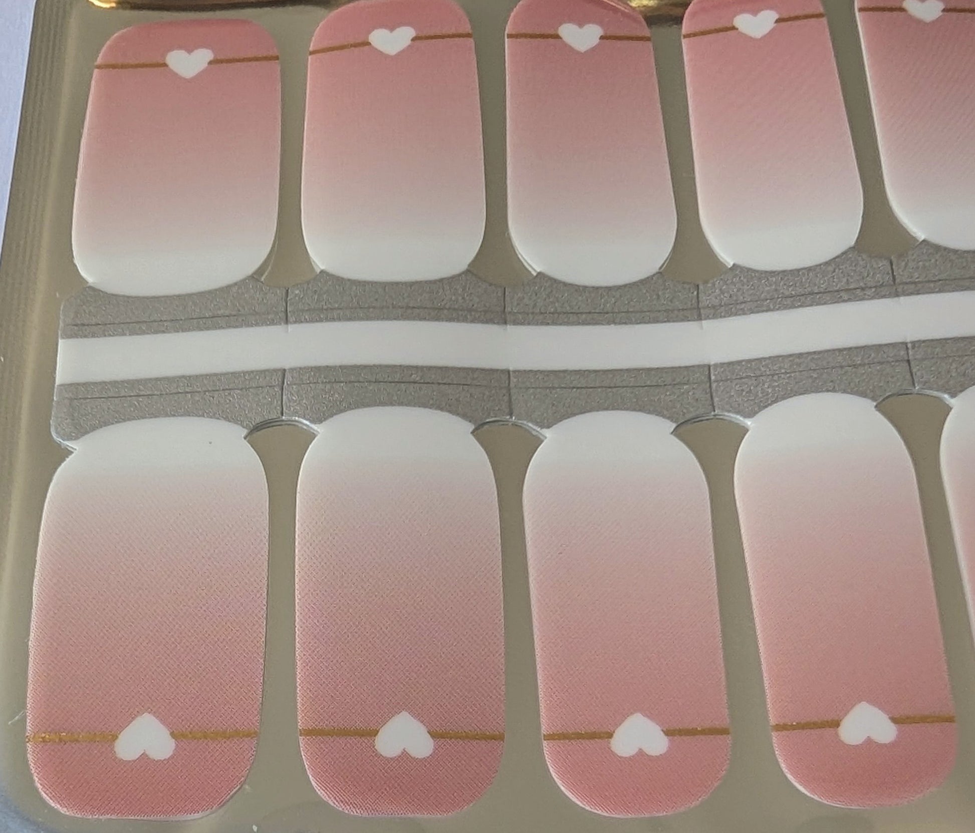 Soft, romantic, and a little luxurious. Heartline features a glossy blush-to-white ombré base with delicate white heart accents, finished with a thin metallic gold stripe. It’s the kind of minimal nail art that feels polished yet playful, perfect for special occasions or everyday wear when you want your manicure to stand out quietly.