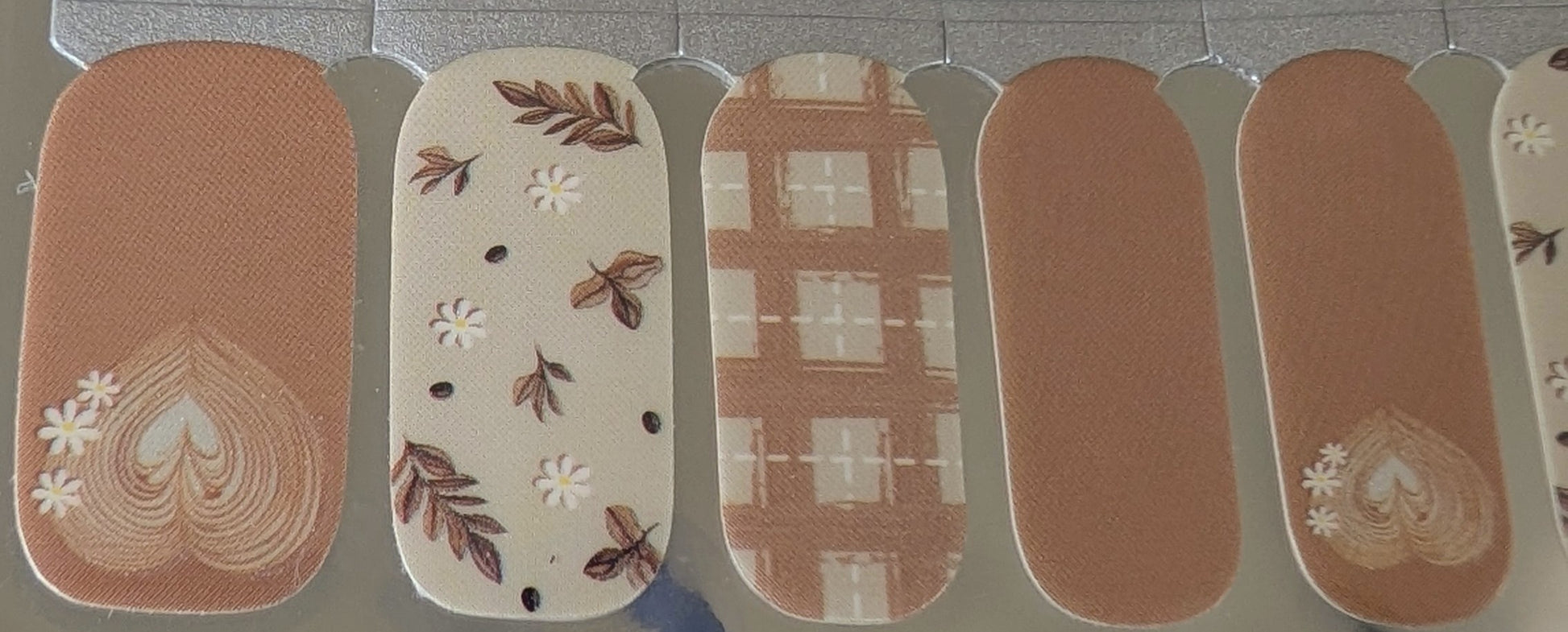 Soft, cozy, and effortlessly charming. Honey Brew blends caramel beige tones with delicate florals, plaid, and a metallic heart accent that feels just like latte art. It’s the perfect set for anyone who loves warm neutrals and subtle fall charm, polished enough for work, cozy enough for weekends.