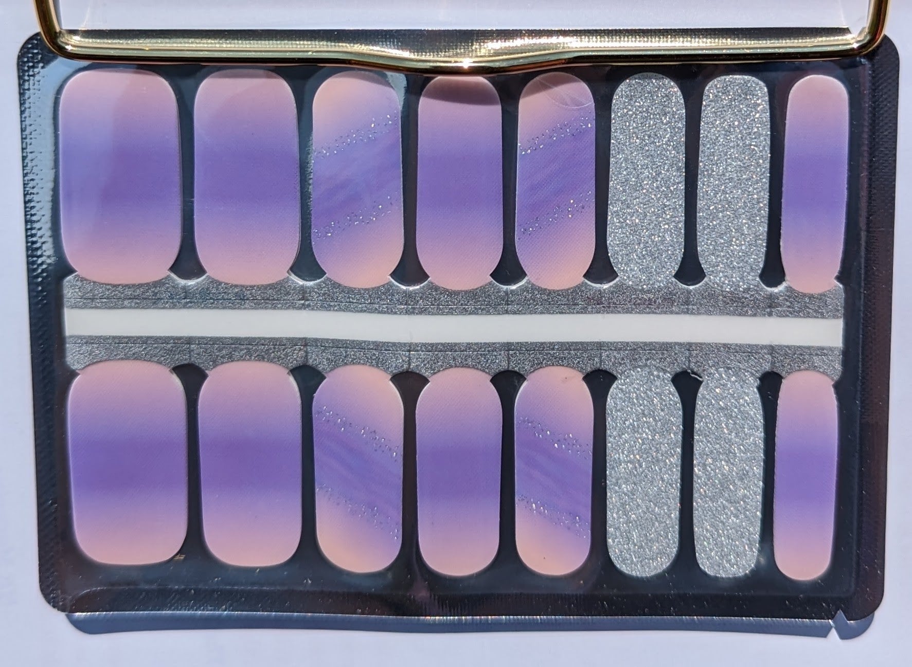 Get ready to shine with our Lavender Dreamcatcher nail wraps. These glossy nail wraps feature a soothing lavender ombré combined with a silver glittery accent that adds a touch of subtle elegance to your look. Perfect for any occasion, these wraps will have you feeling glamorous in no time!
