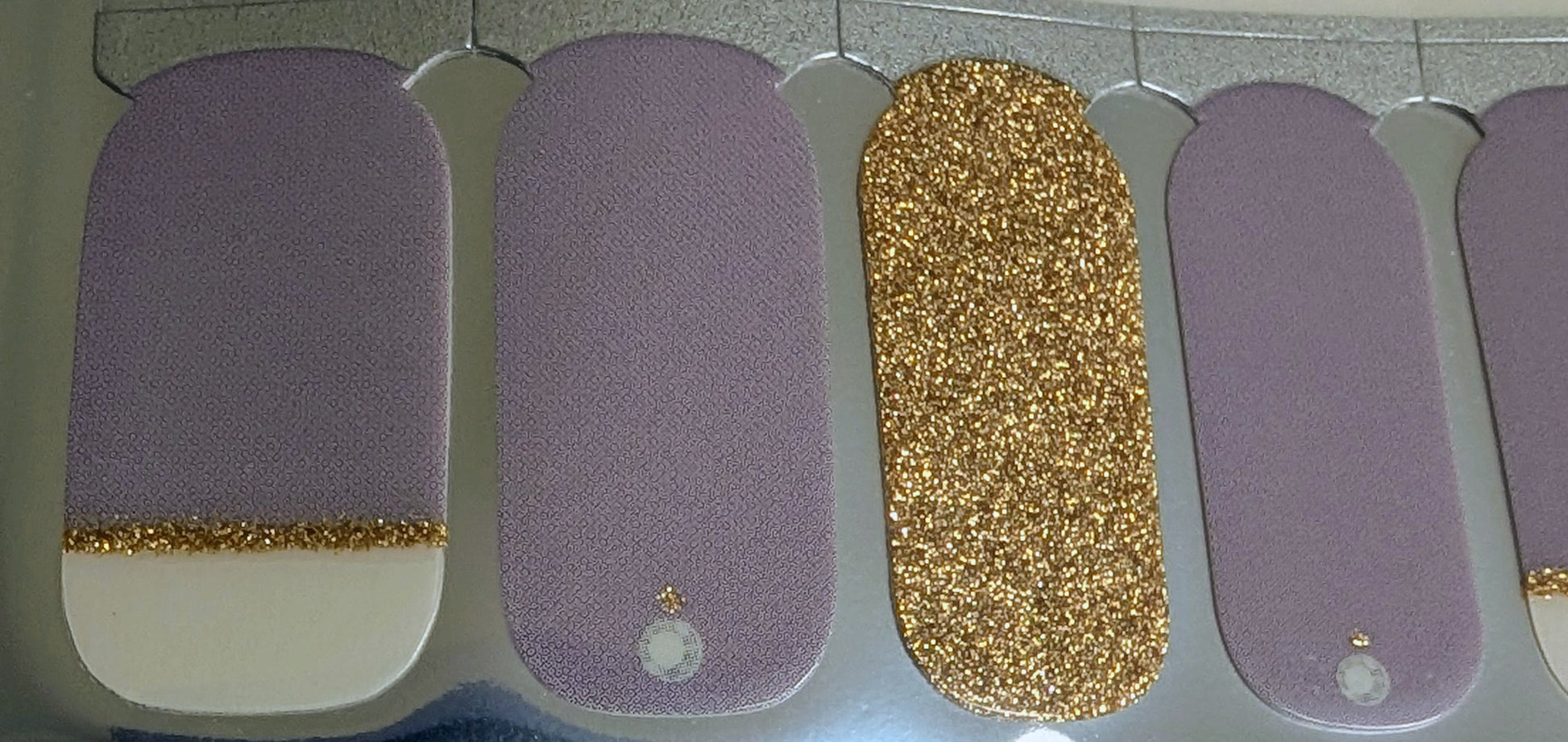 Chic, refined, and subtly glamorous. Mauve Edit blends soft mauve tones with gold glitter accents and transparent details for a polished, understated finish. The glossy surface catches light just enough to add warmth and dimension, making it perfect for both everyday wear and special occasions.