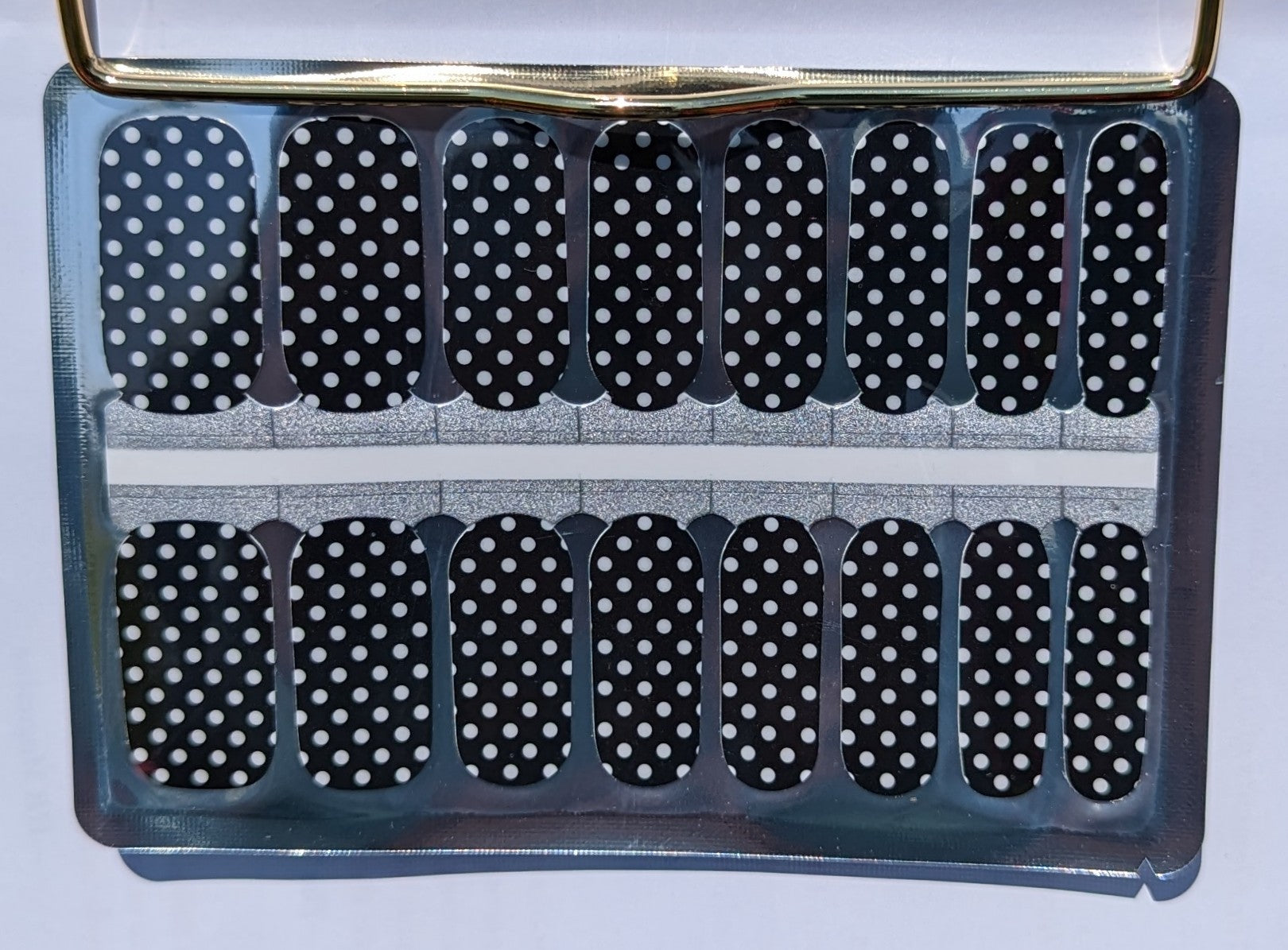 Get ready to shine with our Nighttime Polka nail wraps. These glossy nail wraps feature a black shade with white polka dots that add a touch of elegance to your look. Perfect for any occasion, these wraps will have you feeling glamorous in no time!