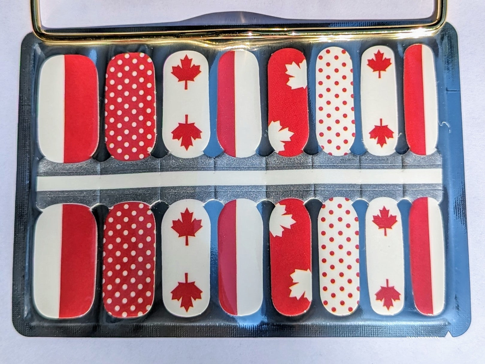 Get ready to celebrate Canada Day with our Oh Canadazzle nail wraps. These glossy nail wraps feature a festive combo of the red and white colors of the Canadian flag that add a touch of playful elegance to your look. Perfect for any occasion, these wraps will have you feeling glamorous in no time!