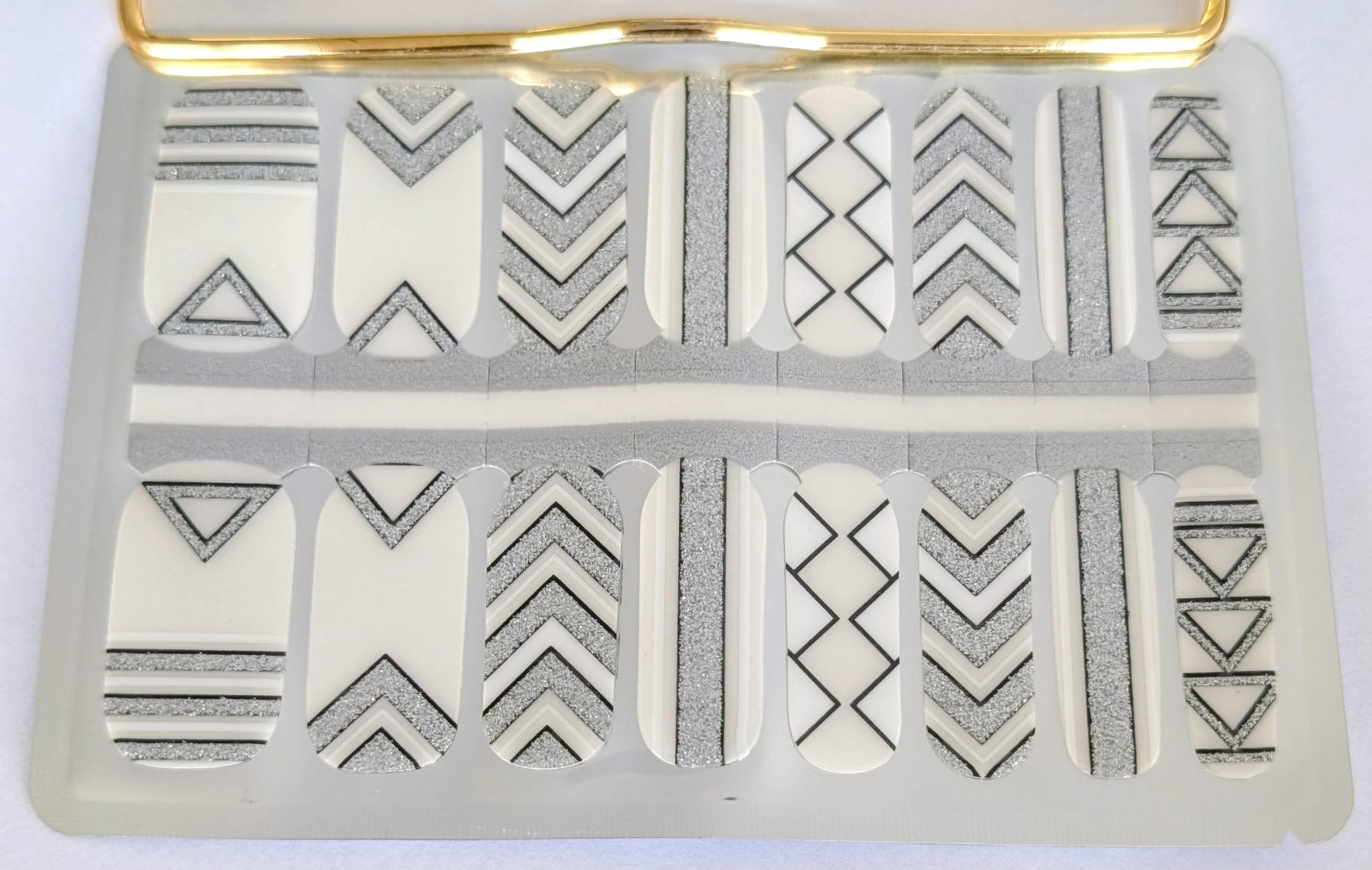 P.S.: The white areas are transparent once applied, letting your natural nail tone shine through the design.