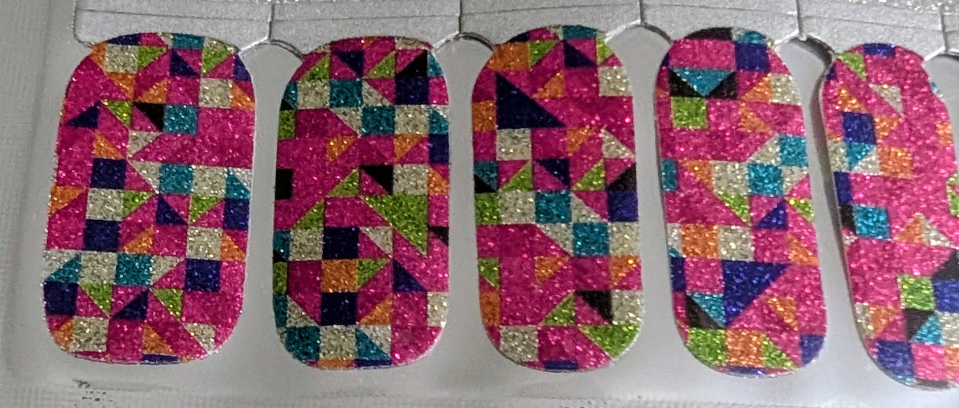 Turn your nails into the main event with Party Matrix, a kaleidoscope of color and glitter that’s impossible to ignore. Each nail shimmers with multicolored geometric sparkle, blending pinks, blues, greens, and golds in a perfectly chaotic mix that feels bold yet wearable.