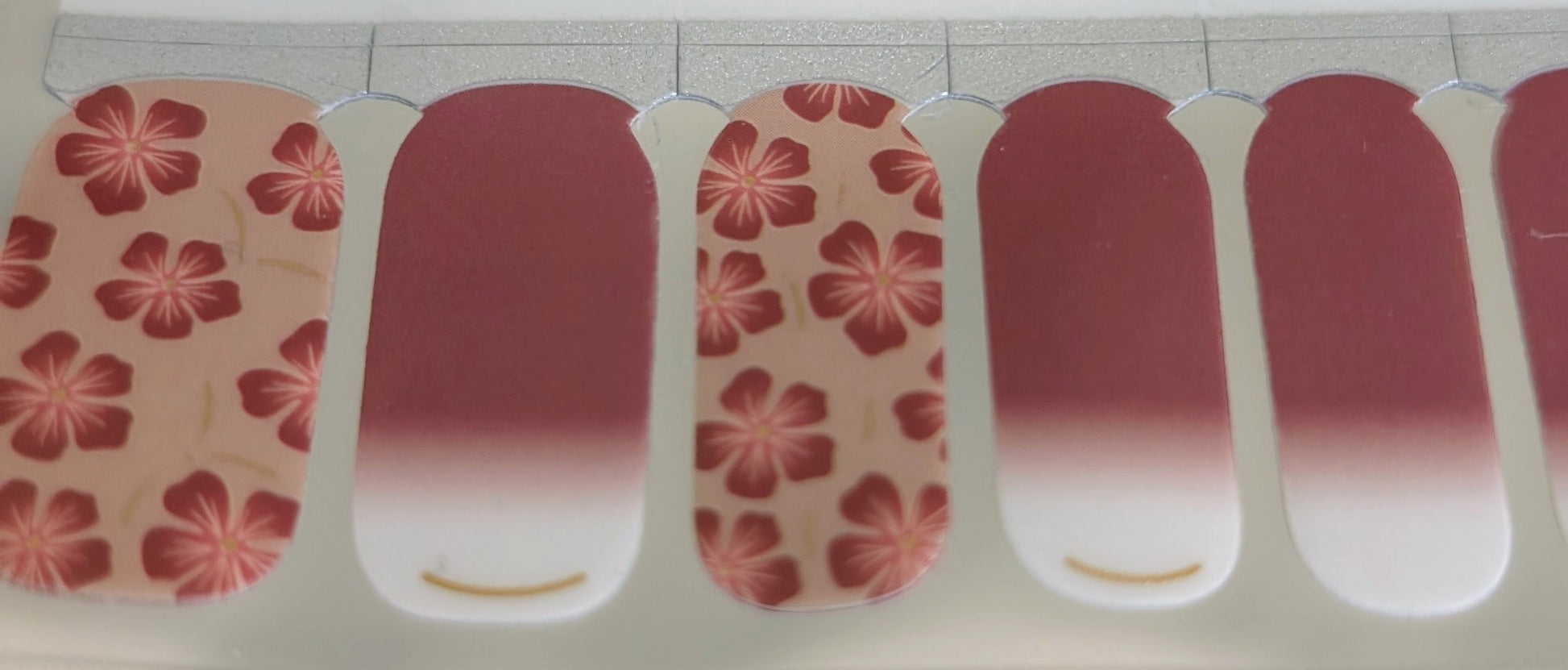 Soft, warm, and quietly bold, Quiet Hibiscus blends a deep hibiscus red-brown with a smooth translucent ombré finish. The floral accents add a subtle tropical touch without overpowering the design, making it an easy choice for anyone who wants a moody yet feminine manicure.