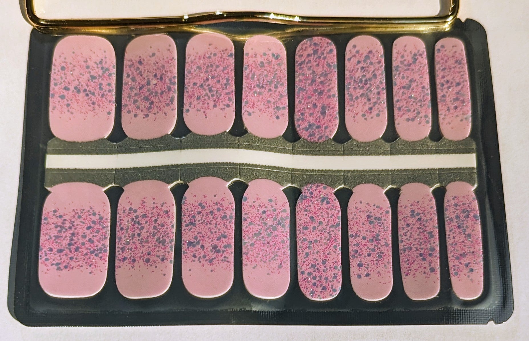 Get ready to shine with our Rosy Glitterati nail wraps. These glossy nail wraps feature a feminine pink shade with mauve and pink big glitters that add a touch of elegance to your look. Perfect for any occasion, these wraps will have you feeling glamorous in no time!