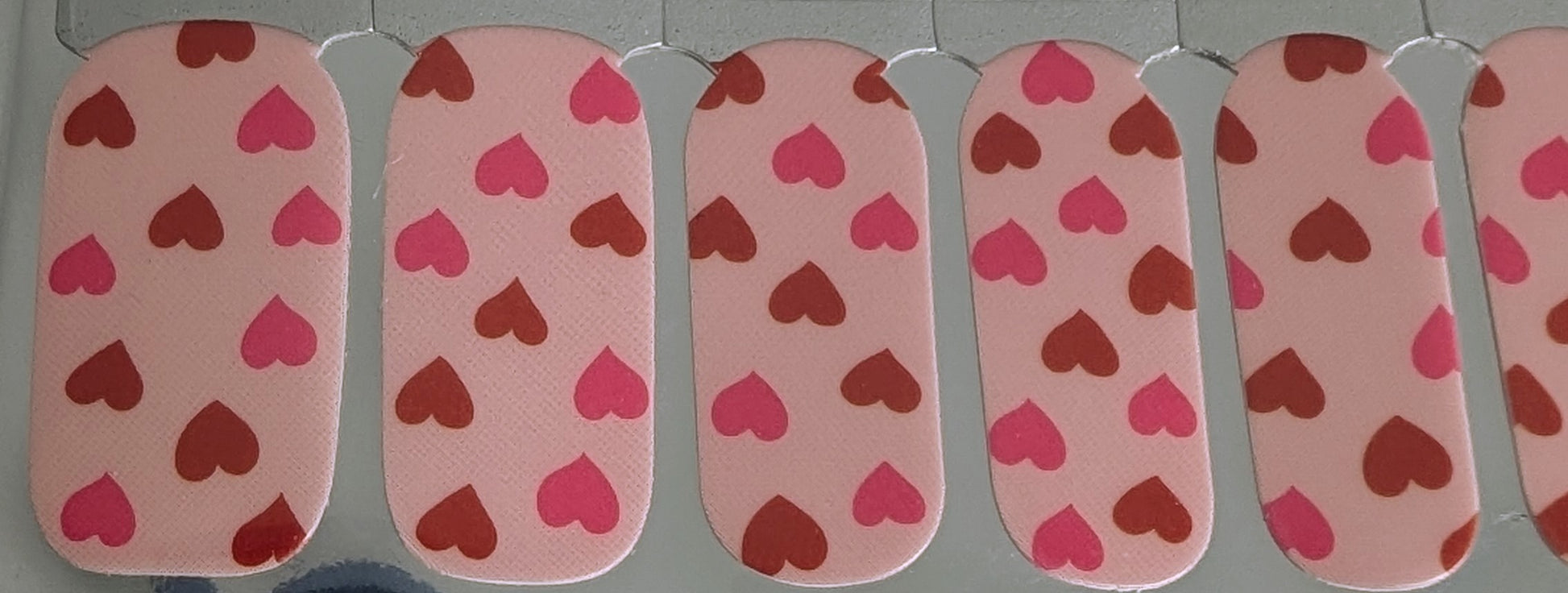 Sheer Love Affair is soft, romantic, and intentionally understated. This semi-sheer pink design features delicate heart accents layered over a glossy finish, creating a look that feels light, effortless, and grown.