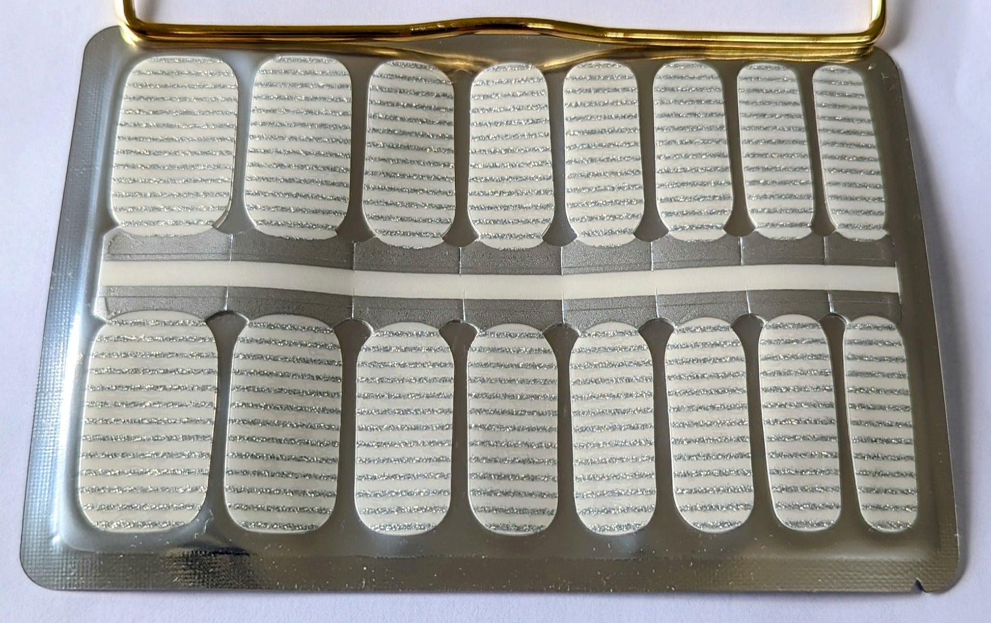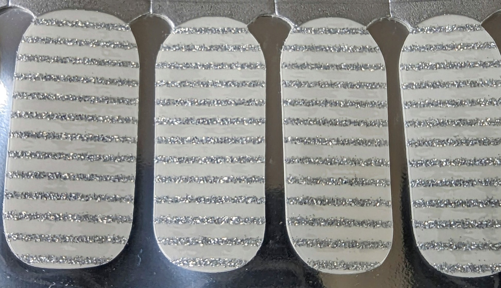Add a frosty edge to your nails with Silent Ice. These transparent nail wraps feature fine silver glitter stripes for a sleek, barely-there sparkle that’s perfect for layering or wearing solo. Whether you're dressing up for winter events or keeping it cool all year round, this design adds a modern shimmer that works with everything.