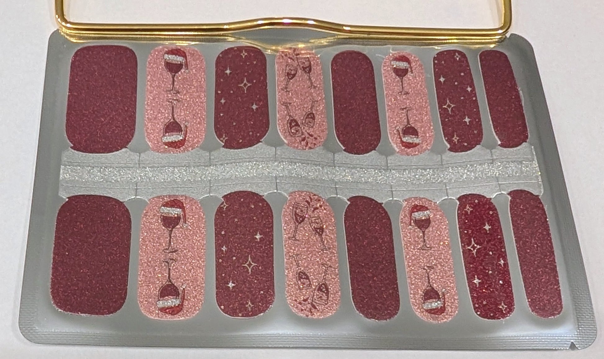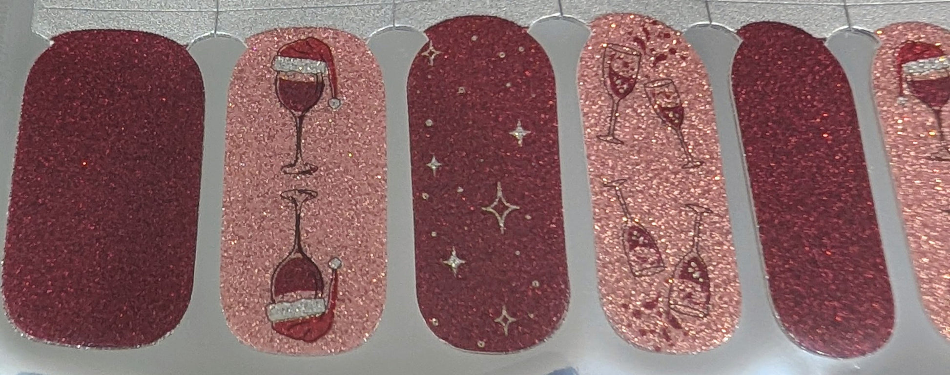 Raise your glass! Sip Happens is here to make your holiday manicure sparkle. These wine red and rose gold glitter nail wraps feature chic champagne glass and star details, giving you the perfect mix of festive and refined.