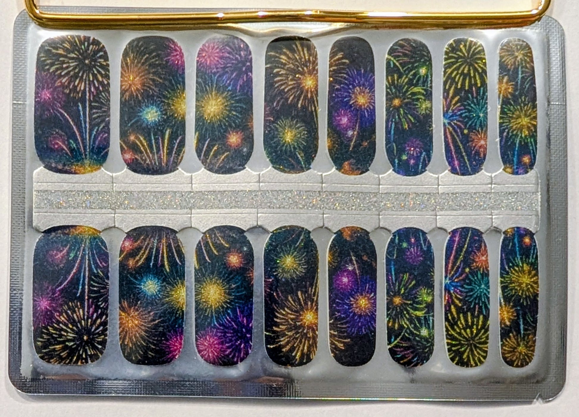 Let your nails shine to their own rhythm with Sky Sonata, a mesmerizing pearlescent design inspired by the colors and movement of fireworks against a midnight sky.