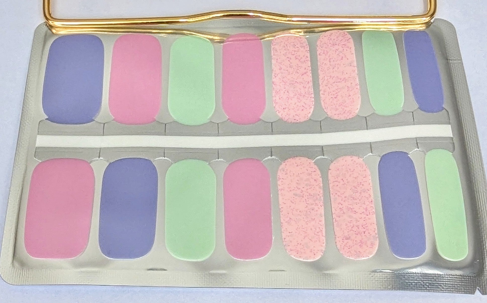 Bring a soft pop of magic to your nails with Softly Confetti. These pastel nail wraps blend airy pastel green and blush pink tones, sprinkled with subtle pink big glitters for a playful yet delicate finish. Perfect for everyday glam or weekend escapes, these wraps add just the right hint of sparkle to any look.