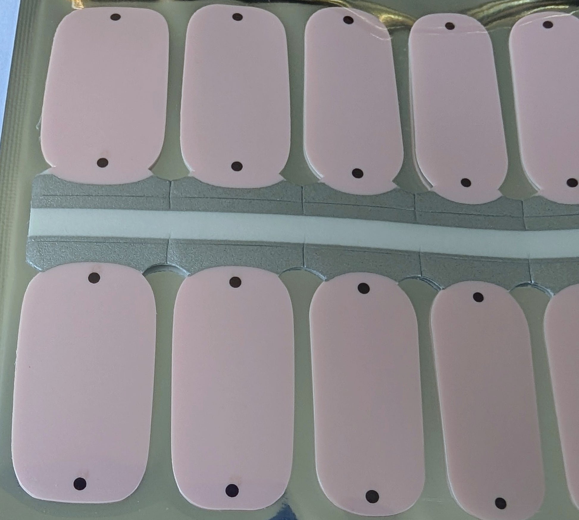 Clean, simple, and just the right amount of playful. Spot On is a glossy blush pink nail wrap set accented with a single tiny black dot at the cuticle. It’s minimal nail art without the effort, modern, chic, and versatile enough to pair with any outfit.