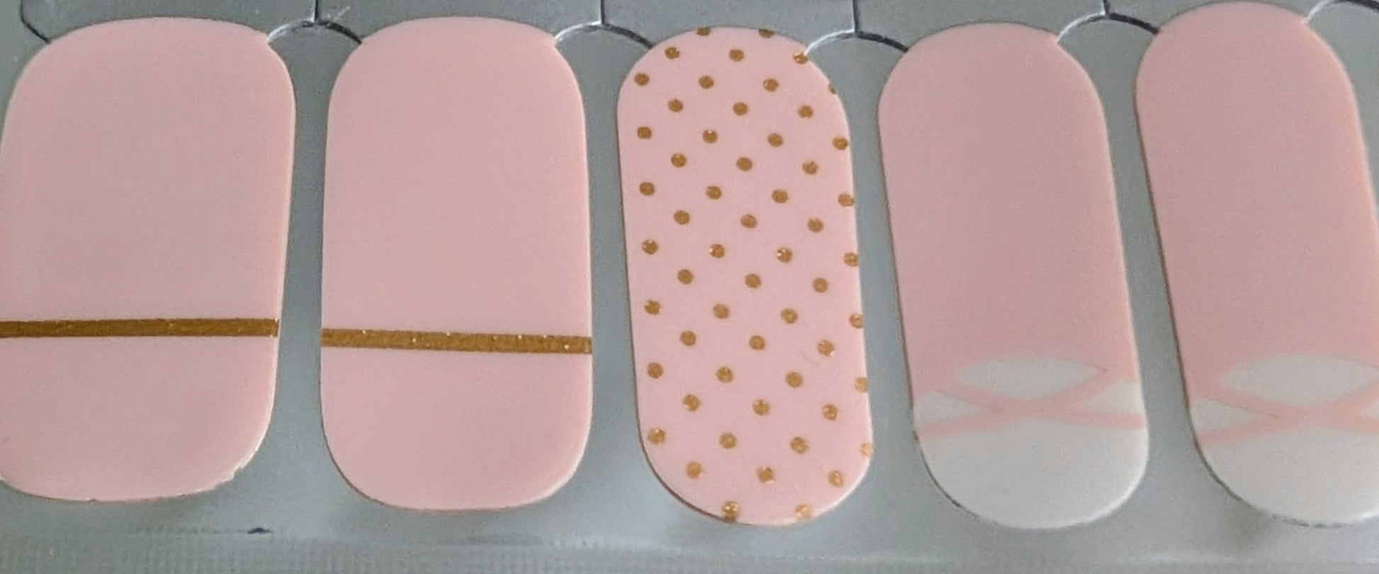 Meet Subtle Opulence, a soft pink nail wrap set with transparent tips and fine metallic gold details that redefine quiet luxury. With its perfect balance of nude elegance and refined shimmer, these blush and gold nail wraps bring effortless sophistication to any look.