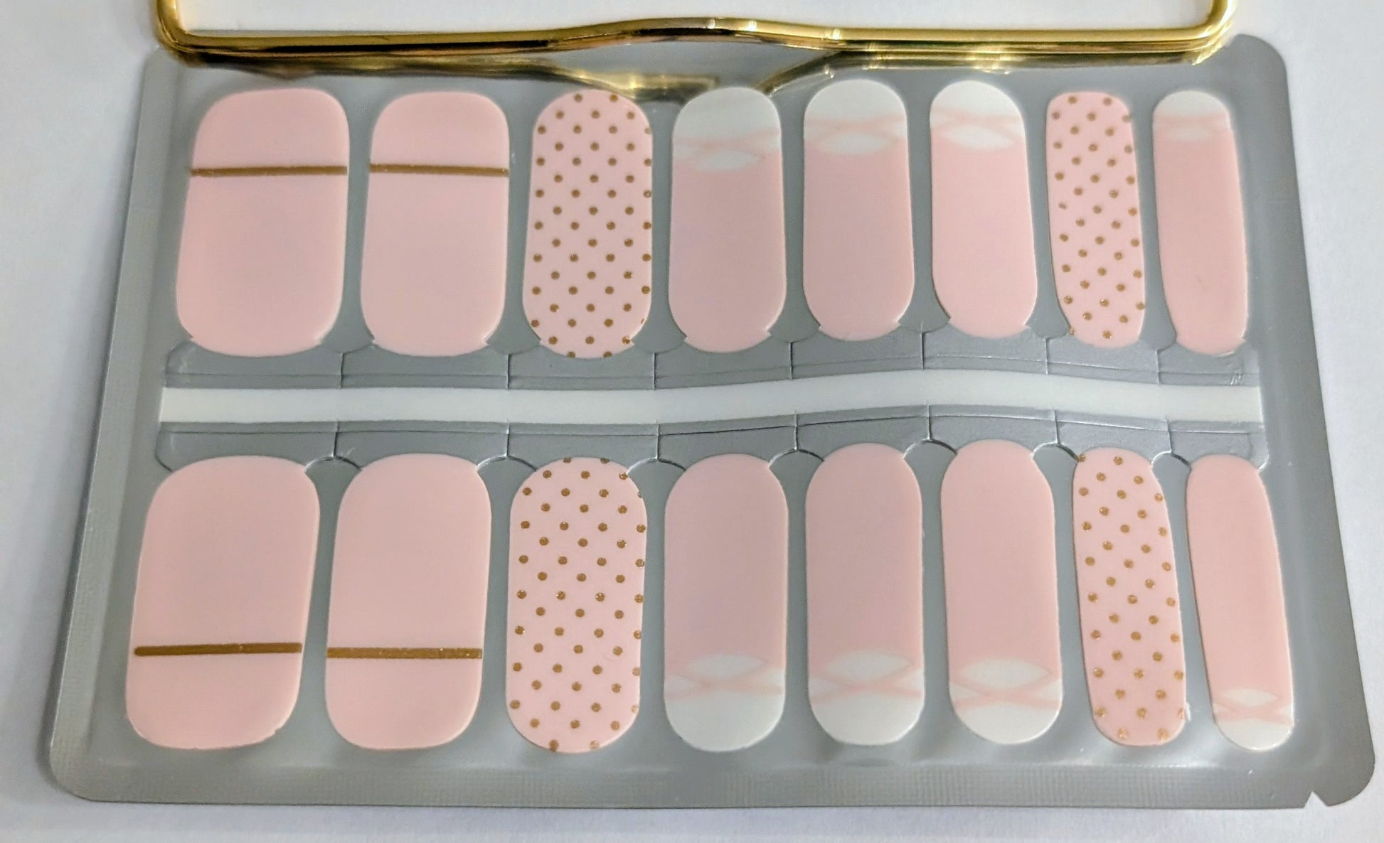 Designed for those who love a polished manicure without the hassle, Subtle Opulence offers a modern, minimal aesthetic with a hint of glam. Easy to apply, glossy, and long-lasting, these nude and gold nail wraps elevate your everyday style.