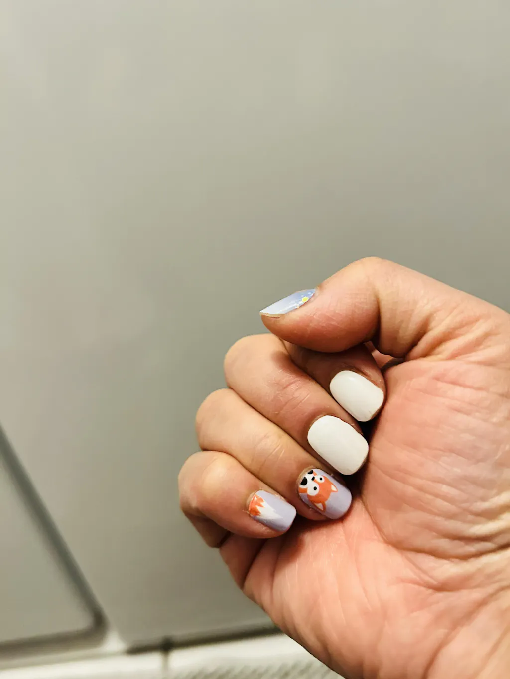 Play it cool with Undercover Fox, a glossy nail wrap set featuring a minimalist fox design on a soft grey-blue base. With one wrap showing the fox’s curious face and another its tail, this set is the perfect mix of playful and polished.